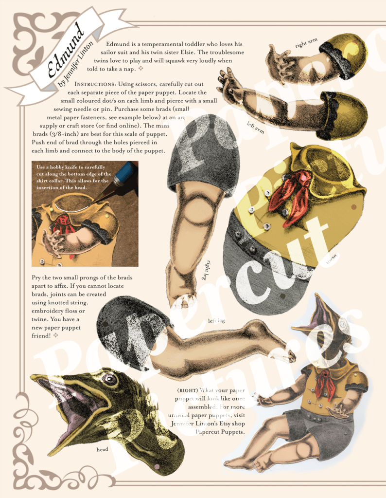 I think my next design will be a doll with a parasitic twin. It’s a nice change to not have a big major studio project that takes years to complete (although I’ll be back to that in the future). What type of paper puppets would you like to see? Leave me your suggestions in the comments.