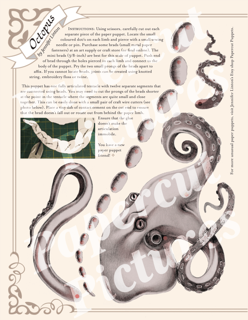 Recently, I’ve been creating designs for a series of downloadable, articulated paper puppets for my Etsy shop Papercut Puppets. One of these designs will end up in a magazine later in Summer 2019 (more on that later).