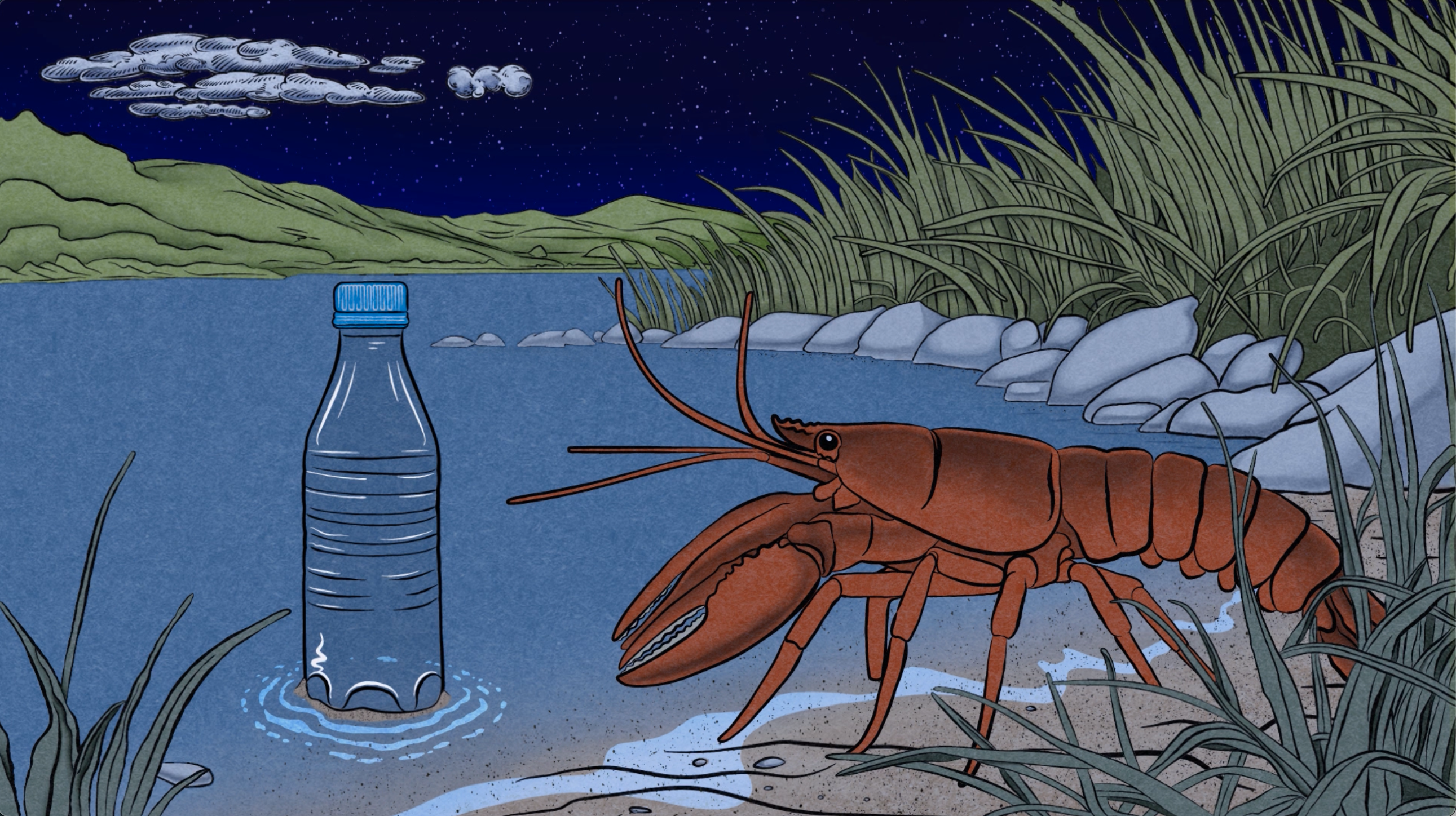 lobster with bottle