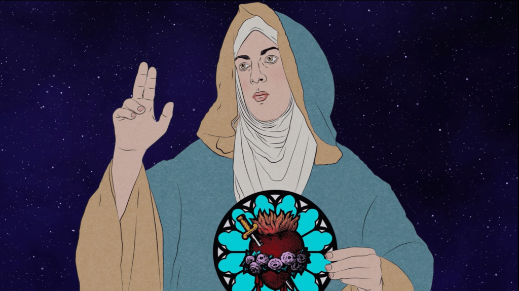 I love liturgical art and, specifically, statues of weeping Madonnas, so it’s not surprising that this image has cropped up on my current project. Also, I just enjoy animating tears. You can be really loose with the drawing and it turns out pretty well.