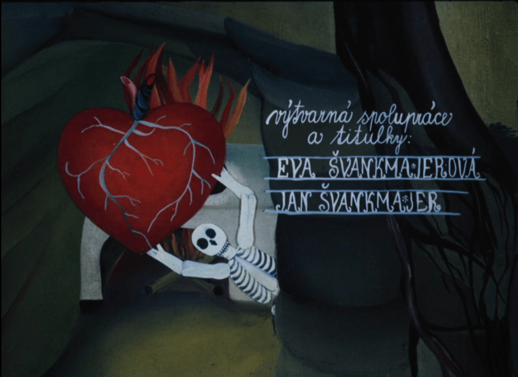 I had the great pleasure of contributing some animation and artwork for the All The Haunts Be Ours Vol. 2 box set from Severin Films. One of my contributions included an animated title sequence for a featurette on the fantasy-horror Czech film The Ninth Heart (original title Deváté srdce, 1979), directed by Juraj Herz. This film boasts an animated title sequence by stop-motion maestro Jan Švankmajer and his wife and frequent collaborator, artist Eva Švankmajerová. Their title sequence used a top-down, 2D stop-motion technique with articulated paper puppets. According to what I could find on the Internet (there’s very little written on this hidden gem), Eva painted all the backgrounds while Jan did the animation. In addition to a credit for “visual effects”, Jan Švankmajer is credited as the “artistic collaborator”, which suggests his involvement in the design of the marionette puppets seen throughout the film. The title sequence and the marionettes are very much in a naïve, folk art style that one would expect from an independent travelling puppeteer (one of the main characters).
