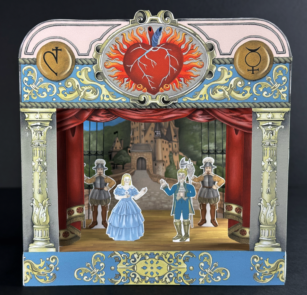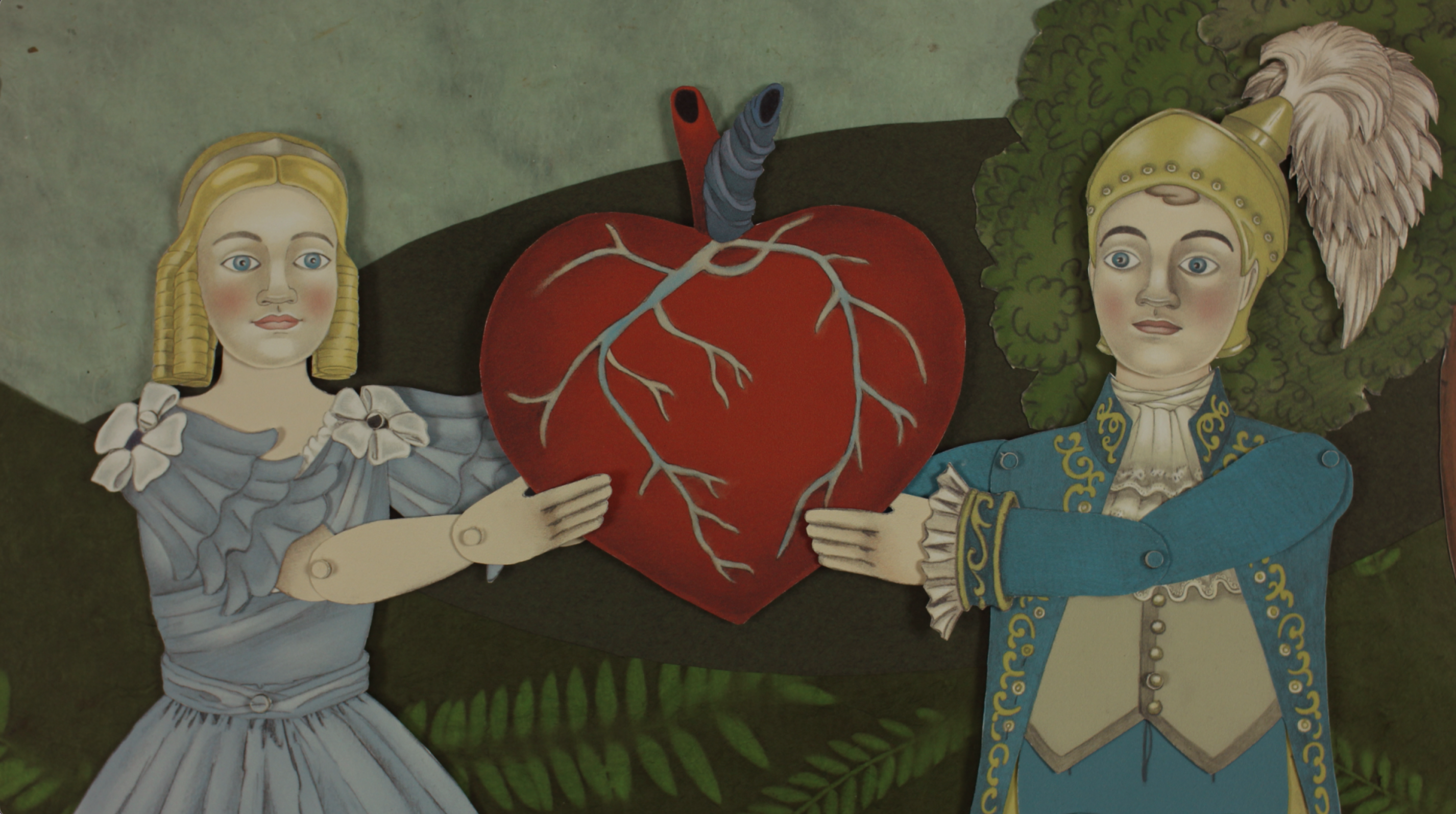 Last summer, I had the great pleasure of contributing some animation and artwork for the All The Haunts Be Ours Vol. 2 box set from Severin Films. My contributions include a paper puppet theatre, and an animated title sequence for a featurette on the beautifully restored dark fantasy film The Ninth Heart, directed by Juraj Herz. This Czech film boasts an animated sequence by stop-motion maestro Jan Švankmajer and his wife and frequent collaborator, artist Eva Švankmajerová. Their title sequence used a top-down, 2D stop-motion technique with articulated paper puppets, a technique to which my sequence pays humble homage.