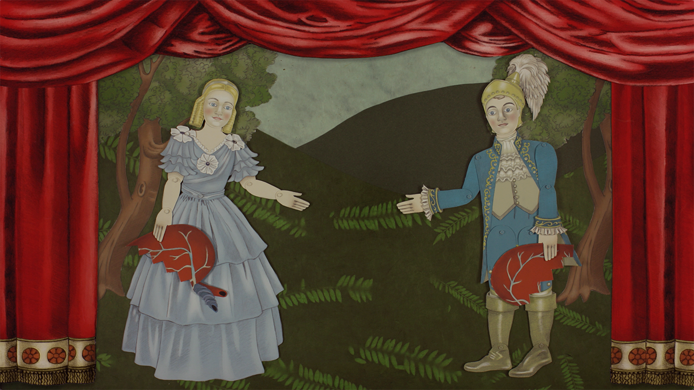 My title sequence adopts this folk art style and references both the Švankmajer animated title sequence, the marionettes, and also some of the main characters in the film.