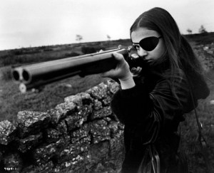 2. Thriller — A Cruel Picture (Swedish: Thriller – en grym film, also known as They Call Her One Eye, Hooker’s Revenge and simply Thriller) is a 1973 Swedish exploitation film. The film follows the typical Rape-Revenge formula: the heroine suffers tragedy and physical degradation until the latter half of the film, when she exacts bloody revenge on those who’ve abused her. (Read my earlier post on the Rape-Revenge film for my thoughts on this exploitation subgenre.) The teenage Frigga — who has been rendered mute by the childhood trauma of sexual abuse — is kidnapped by the local pimp and forced into both heroin addiction and prostitution. When she is initially non-compliant, Frigga has one of her eyes cut out with a scalpel in a brief but grisly scene that reputedly employed an actual cadaver as a body-double. From then on, she silently endures abuse from her clients while she saves up her portion of the financial transactions. She packs her Mondays (her one day-off work) with karate class, rifle-shooting and driving-really-super-fast class, as she secretly plots her revenge. Montage after long montage, she finally dons a black leather trenchcoat, matching eye-patch, and a sawed-off shotgun, and pays a slow-motion visit to each of her (soon to be former) clients.